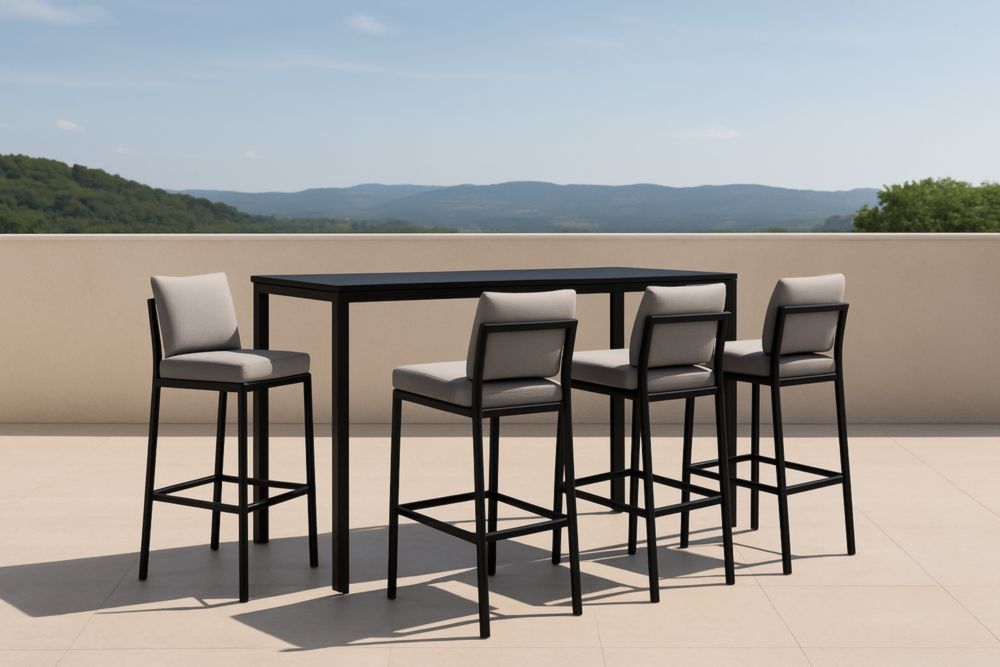 Dimensioni Sgabelli: Altezza 95 cm, larghezza 40 cm, profondità 45 cm.